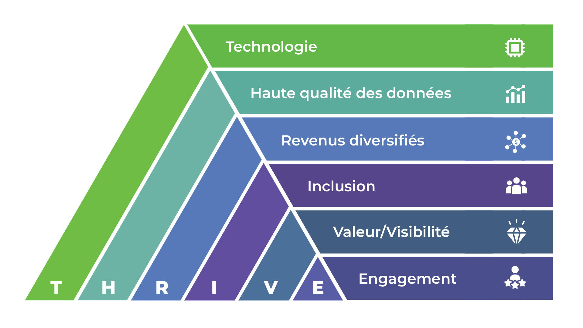 Le modèle de Croissance continue THRIVE repose sur un cadre structuré et personnalisable pour favoriser la croissance organisationnelle. Il met l’accent sur les piliers suivants :